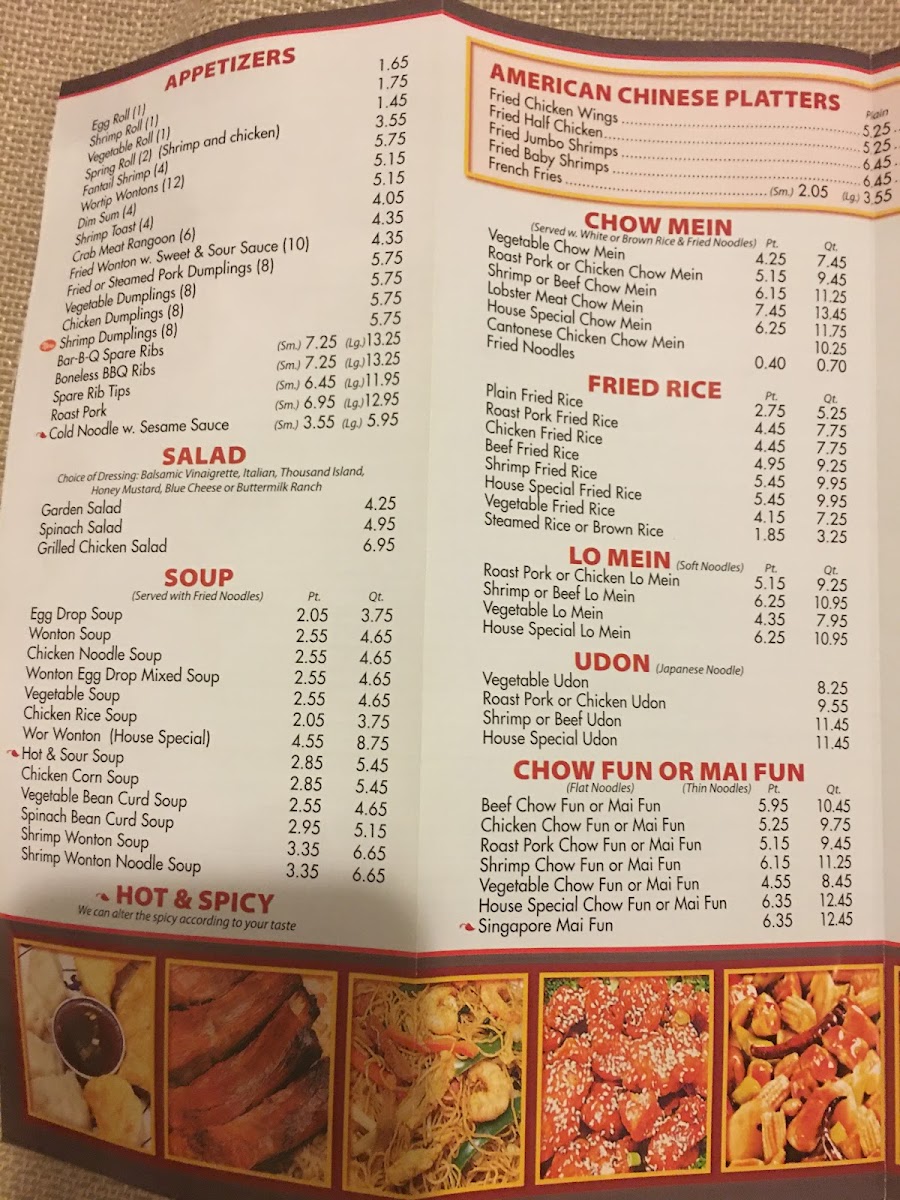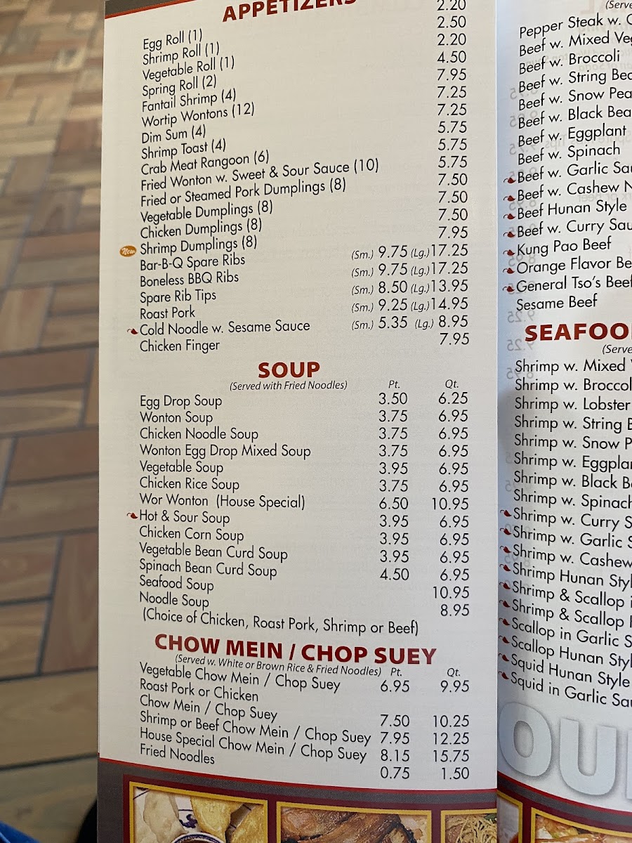 Housemade Chinese dumplings with minced pork and shrimp filling in soup.Served with fried noodles.